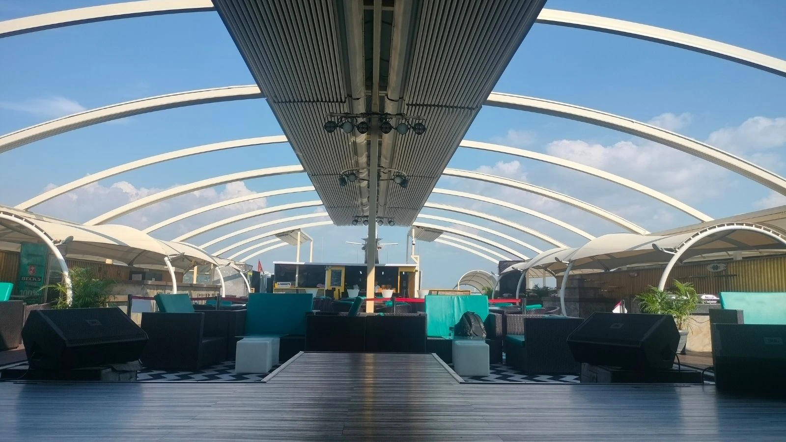 Bioclimatic louvered roofs and PVDF fabric systems have size limitations, often requiring multiple modules placed parallelly, which introduces additional columns within the space below. For areas that already have a fixed glass or polycarbonate structure, Skyzip fabric sun screens offer a lightweight solution that enhances shading without structural modification. ARKAYU’s site evaluations ensure each system is installed safely and seamlessly.